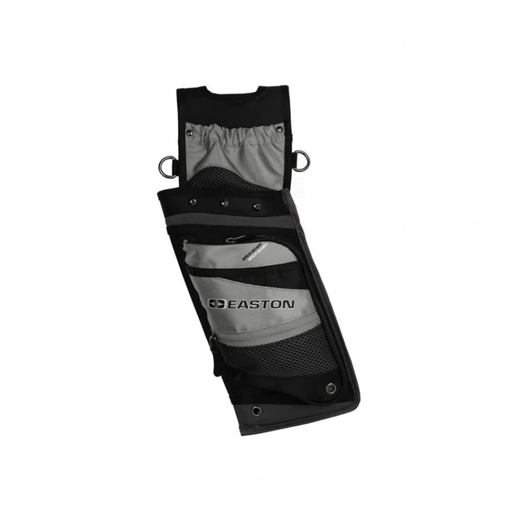 High-denier woven fabric construction with a semi-rigid rear-facing compression-moulded arrow body eliminates the need for separate arrow tubes.