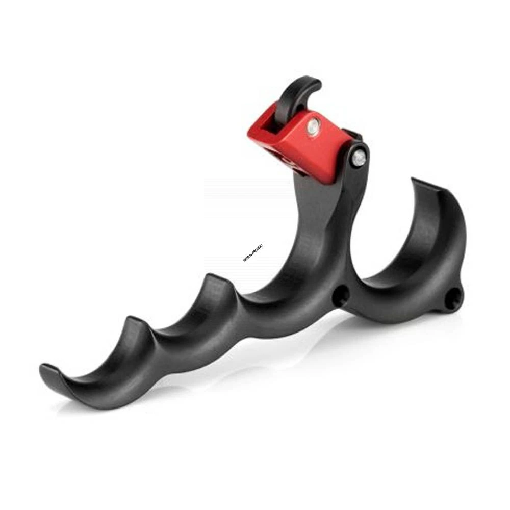 The ergonomically correct handles feature critical surface area on the inside to eliminate any pinch points. Because of its sleek and streamlined design, the X-Tacy can be held deep in the hand or further out on your fingers with no finger fatigue or tingling fingers, even after hours of shooting. The 1/2 Moon design allows for a “click” or “no click” release.
