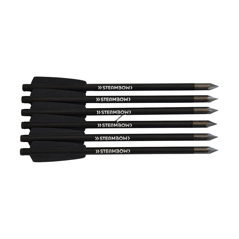 With A weight Of 10.5g / 162grains Per Bolt And A Hardened Hollow Ground Steel Tip, These Crossbow Bolts Are Extremely Effective. The Elegant, All-Black Design With The Steambow Engraving, Perfectly Round These Bolts Off.